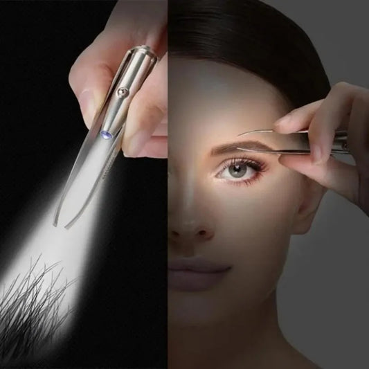 Stainless Steel LED Lighted Eyebrow Tweezer