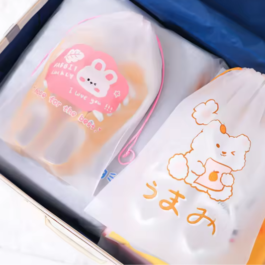 Transparent Multipurpose Plastic Drawstring Bag - 3pc Set (Random Design)