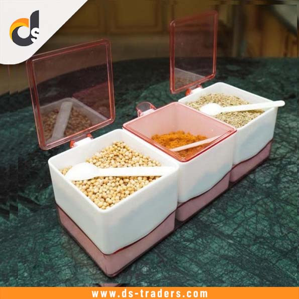 Keep your seasonings organized and fresh with the 3 Compartment Spice Box with Lid & Spoon—perfect for everyday cooking and dining.