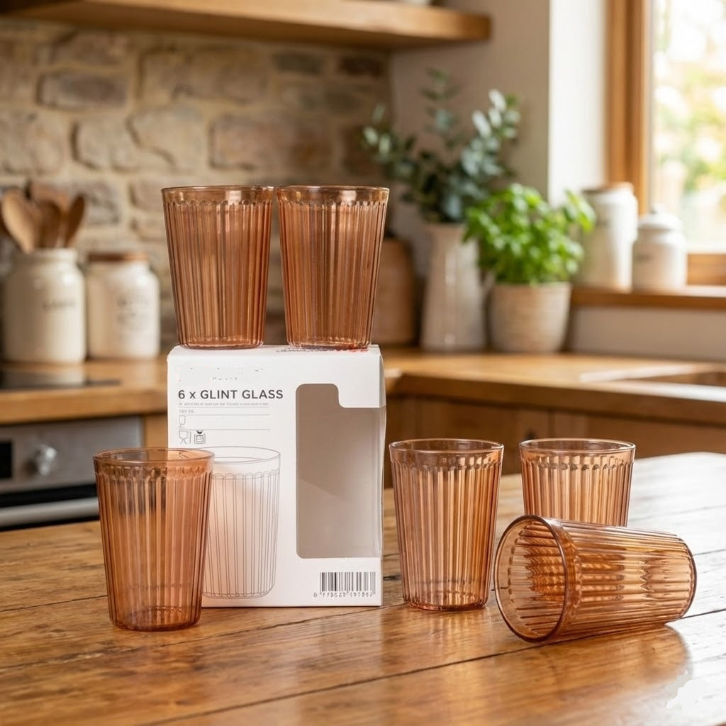 - Set of 6 plastic glint glasses for versatile beverage serving