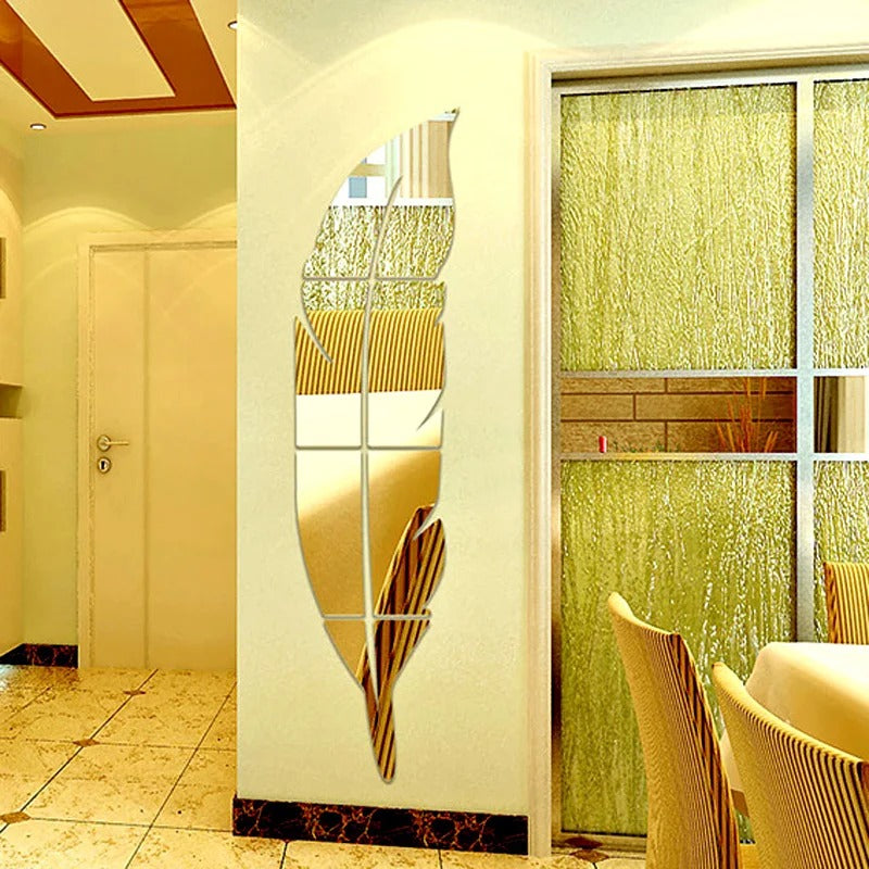 Acrylic Feather Mirror Wall Sticker (37x7 inch)