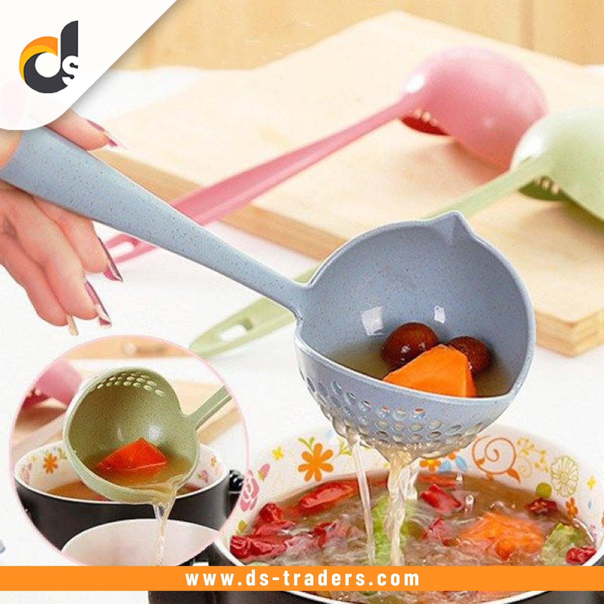 Long Handle 2 In 1 Cooking Colander Slotted Spoon.
