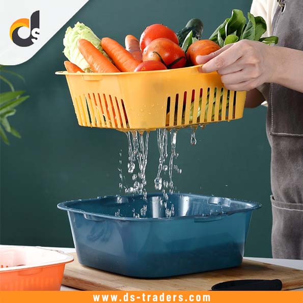 Simplify kitchen tasks with the Multi Functional Double Drain Basket—perfect for washing, draining, and storing fruits, vegetables, and other ingredients.
