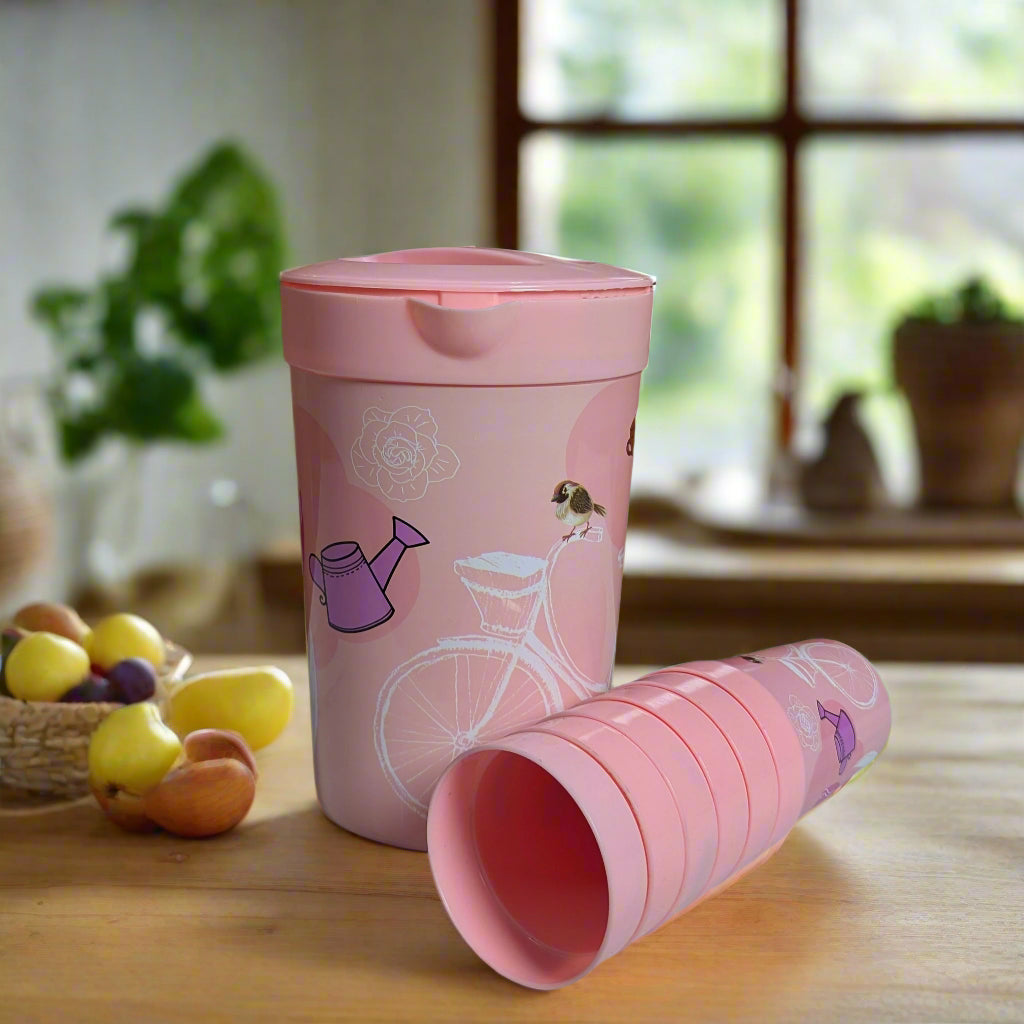 The Portable Plastic Jug with 6 Glasses is a practical and stylish beverage set perfect for home, office, picnics, or outdoor gatherings. Designed for convenience and durability, this set is made from high-quality, food-grade plastic, ensuring safe and long-term use. The lightweight yet sturdy design makes it easy to carry and pour, while the included glasses make serving drinks hassle-free. Ideal for water, juice, lemonade, and other beverages, this set is a must-have for every household.
